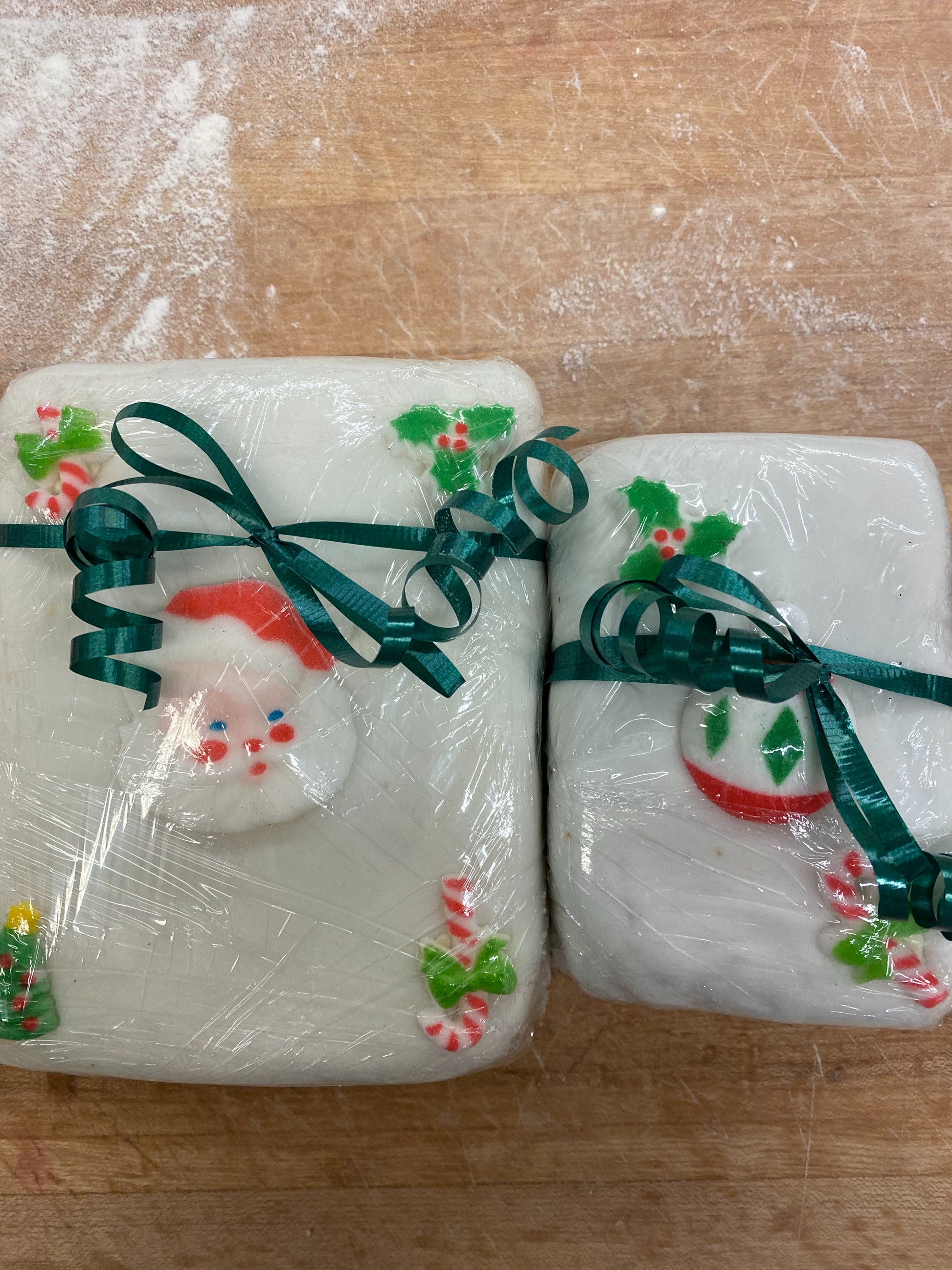 Available in two sizes either dressed with marzipan and royal fondant or plain.